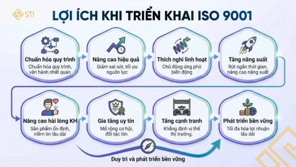 - Hướng tới phát triển bền vững và tối đa hóa lợi nhuận: ISO 9001 tạo nền tảng cho sự ổn định lâu dài, cải thiện hiệu quả kinh doanh và nâng cao giá trị thương hiệu trong dài hạn.