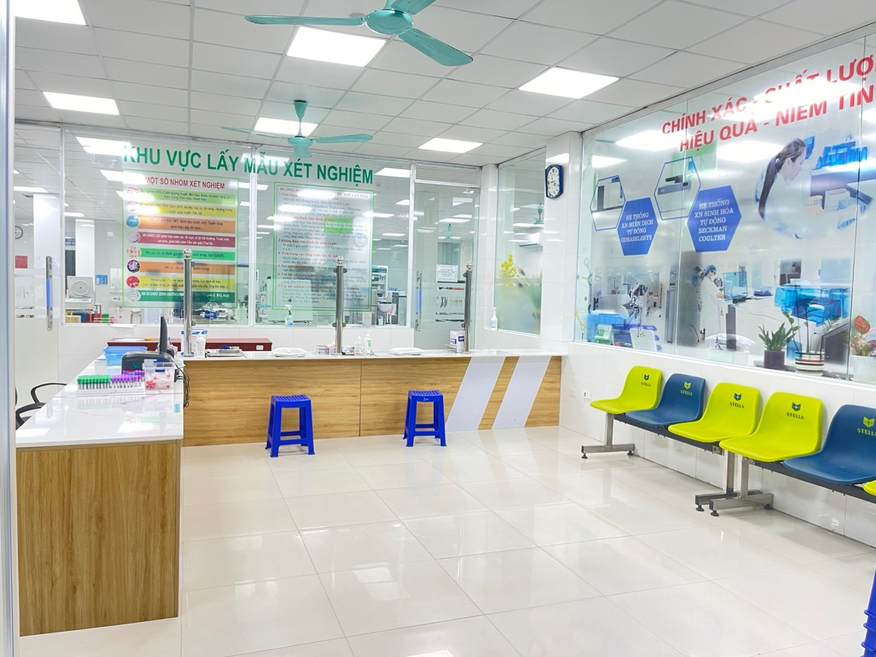 Khu vực lấy mẫu xét nghiệm sau cải tiến khang trang, sạch sẽ; bàn lấy mẫu tối ưu hơn