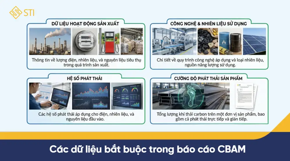 Các dữ liệu bắt buộc trong báo cáo CBAM
